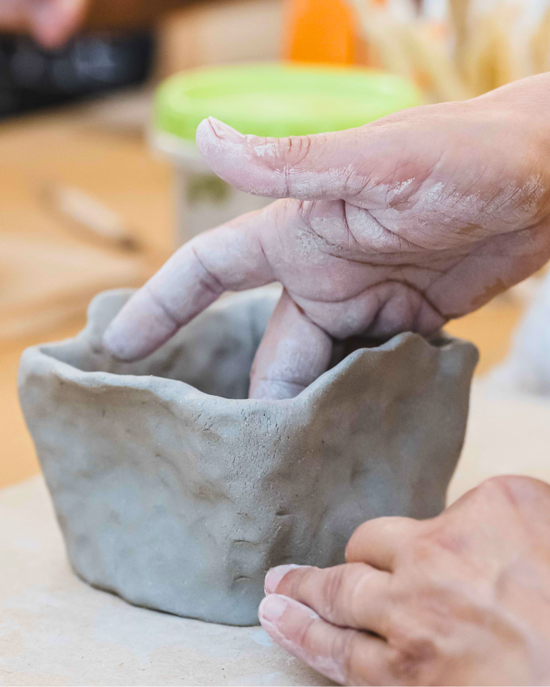 Neste workshop vai moldar o barro, sentir a forma a ganhar vida entre os dedos e criar a sua própria peça de raíz.